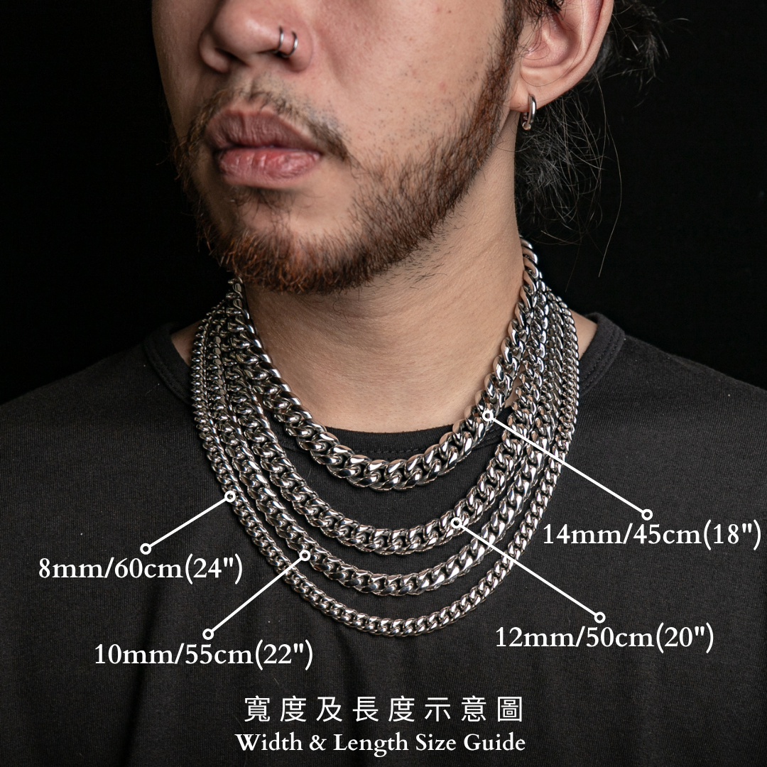 該款項鍊有同款式不同寬度,寬度分別為8mm/10mm/12mm/14mm。