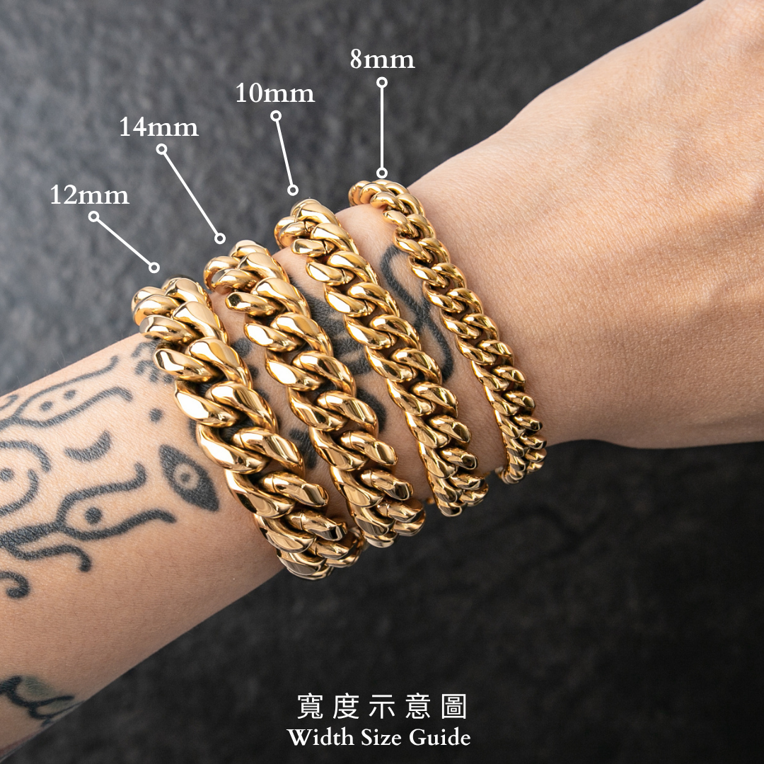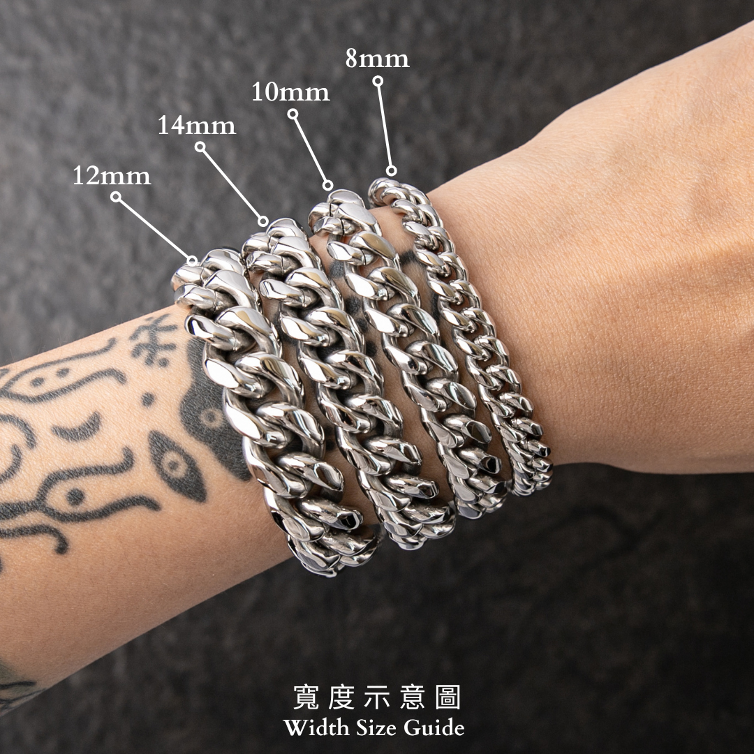 該款手鍊有同款式不同寬度,寬度分別為8mm/10mm/12mm/14mm。